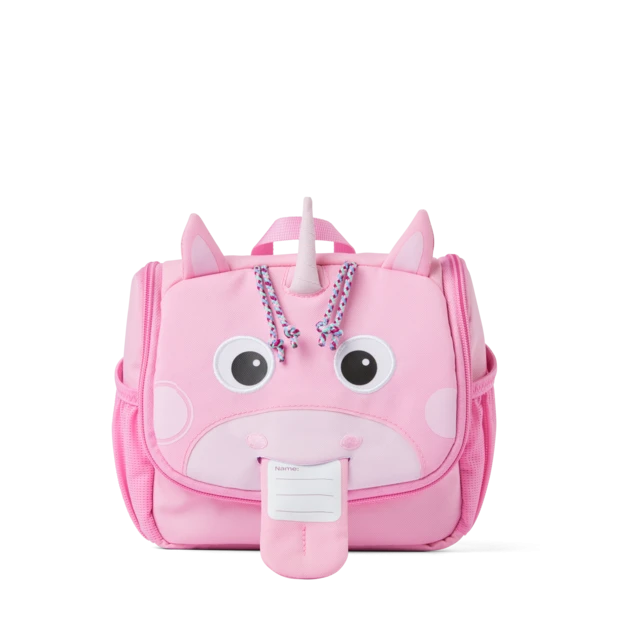 Kinderwaschtasche von Affenzahn mit durchdachtem Innenleben und allerliebstem Design. Wie bei den Affenzahn- Rucksäcken ist das Namensschild auf der herausziehbaren Zunge untergebracht. Die Zunge schnippst einfach wieder zurück…