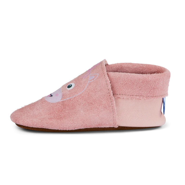 Superweiche Lauflernschuhe für trockene Untergründe. Die weiche Ledersohle bietet den Kleinen Schutz bei den ersten Schritten, bietet aber trotzdem genug Bewegungsfreiheit für die Füßchen und lässt die Struktur des Untergrundes erfahren. Das ist wichtig und gesund. Gefertigt aus Rindsleder und pflanzlich gegerbt sind sie hautverträglich und atmungsaktiv. Die Babyschuhe können auch ohne Socken getragen werden.