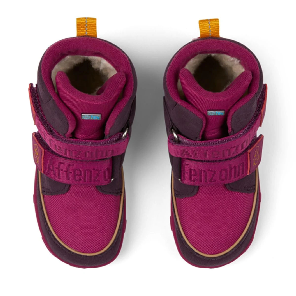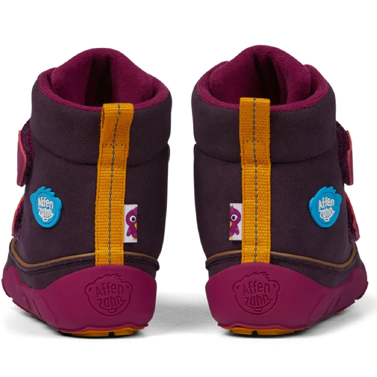 Der super flexible Kinderschuh für die kalte Jahreszeit vermittelt durch seine natürliche Form ein Barfußgefühl. Aus recyceltem Polyestergewebe mit einer wasserfesten Membran gefertigt, ist er robust und hautverträglich. Der Affenzahn Winterstiefel kann kinderleicht mit Klettverschlüssen schnell und einfach geöffnet und verschlossen werden. Der Haifisch und der Vogel unter den Affenzahn Winterschuhen kommen mit einem rutschfesten Profil für sicheren Halt bei Eis und Schnee. Reflektierende Elemente sorgen für gute Sichtbarkeit im Dunkeln. Das kleine Labelfähnchen am hinteren Schuh hilft den Kids, die Schuhe nach rechts und links zu unterscheiden…