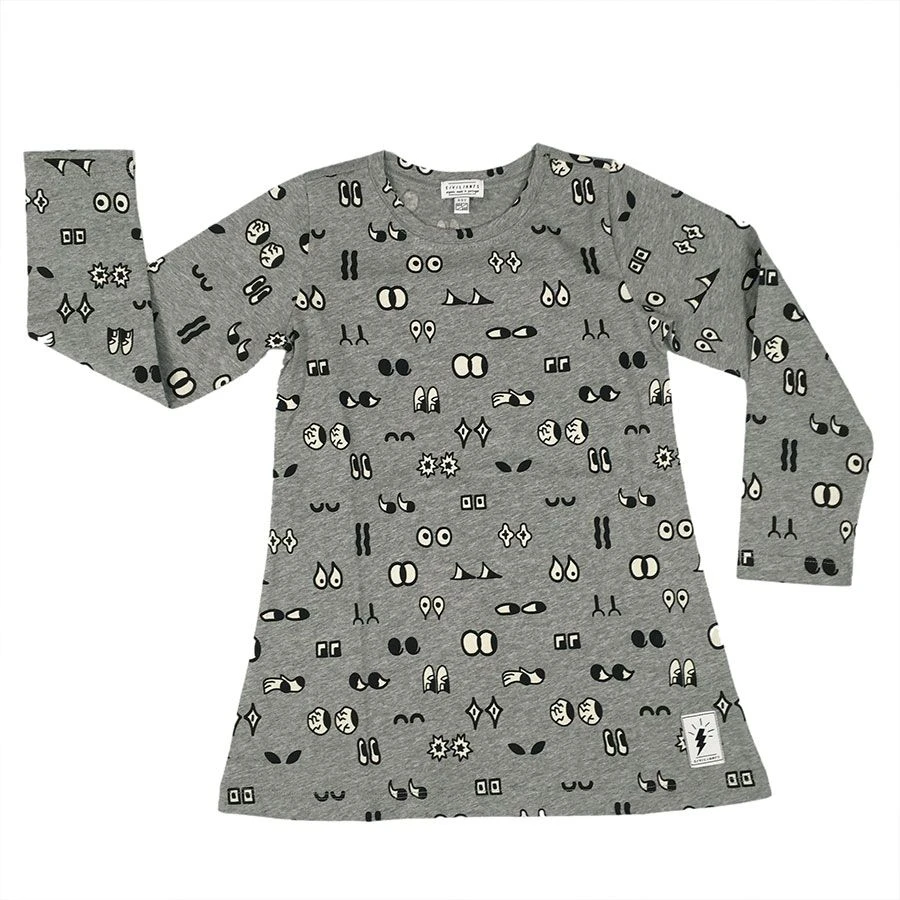 CIVILANTS – KLEID MIT FLÄCHENPRINT – AUGEN/GRAU