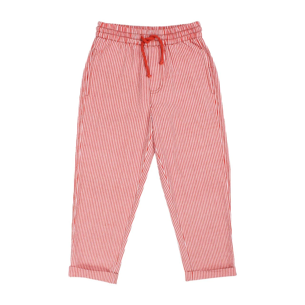 DANEFAE – DANEFREDE SEARSUCKER PANTS – GRIFFIGE STREIFENHOSE – CHALK/BRIGHT RED