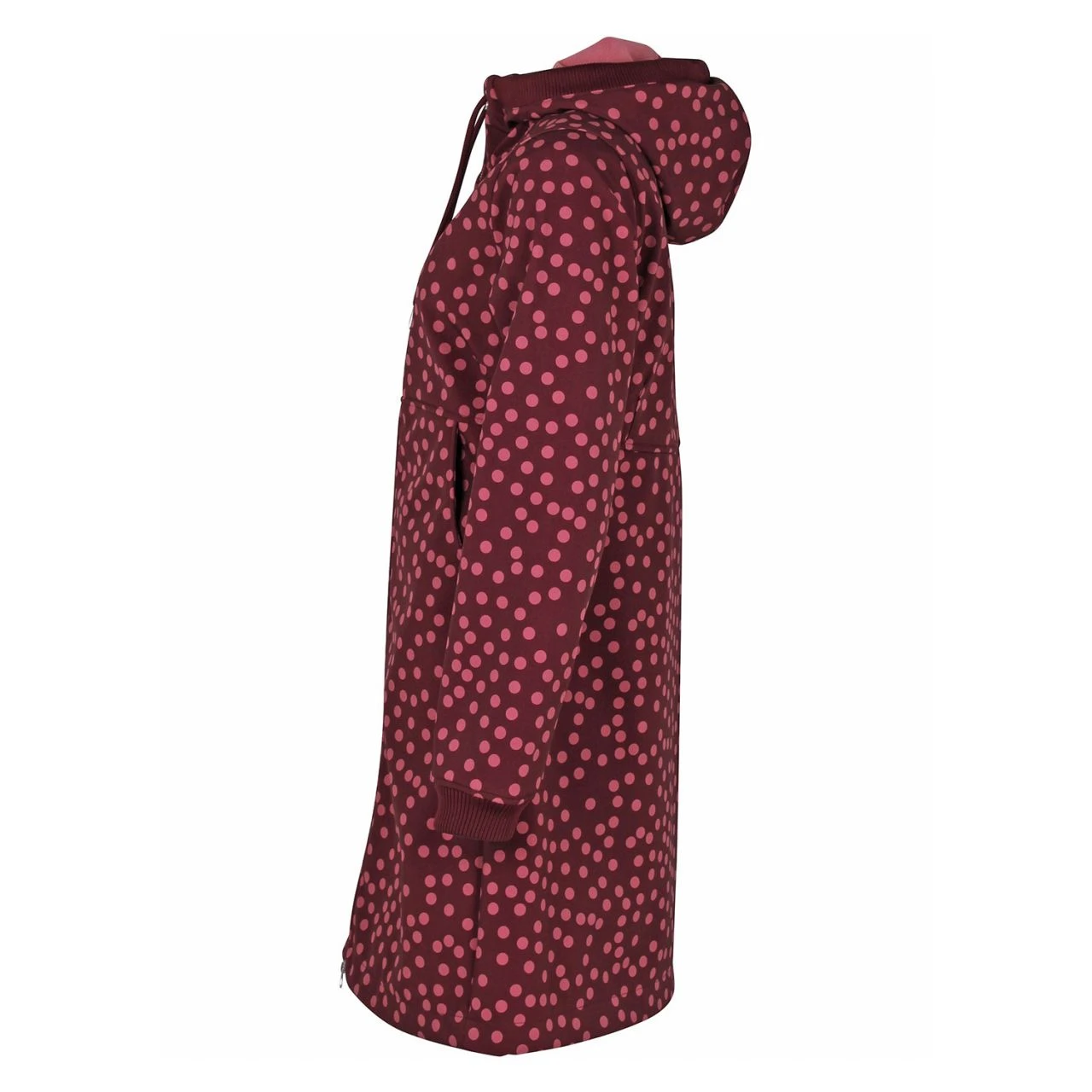 Der verspielt gepunktete Damen Softshell Regenmantel LINE von Danefae macht das Schmuddelwetter gemütlich! Das Obermaterial kommt leicht strechig und bietet dadurch Bewegungsfreiheit. Zum Radfahren kann der 2-Wege-Reißverschluss von untern geöffnet werden und bietet Beinfreaiheit. E kommt leicht tailliert.