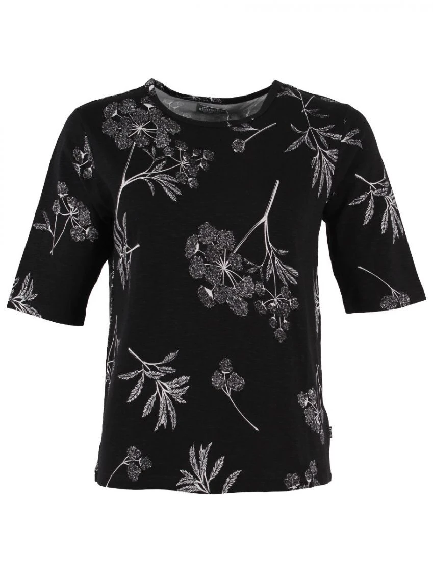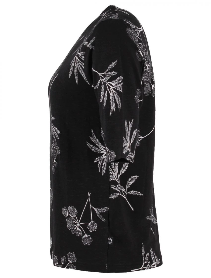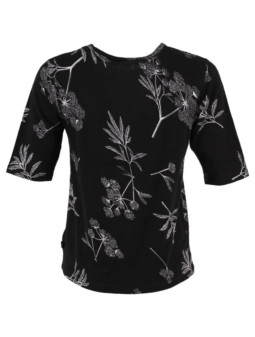 Klassisches Damen- T-Shirt mit floralem Print, das zu jedem Anlass passt! Das T-Shirt hat ein verspieltes, aber nicht aufdringliches Design, ist figurbetont geschnitten, ohne dabei zu eng zu sitzen. Das T-Shirt ist aus einer herrlichen Modal-Jersey-Mischung gefertigt, die zu 50% aus Baumwolle und zu 50% aus Modal besteht.