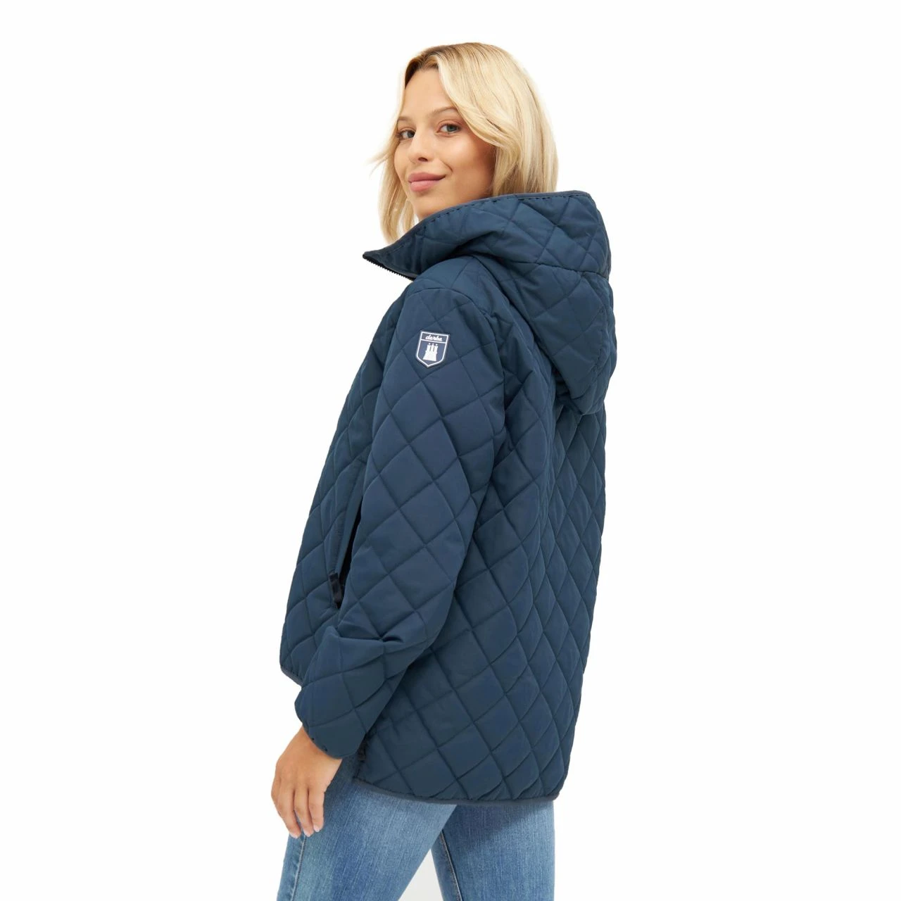 Damen Steppjacke für den Jahreszeitenübergang die durch ihre nachhaltige Produktion und wetterfeste Eifenschaften überzeugt. Sie ist am Rücken länger geschnitten so das sie gut über den Po ragt, ohne ihre sportliche Note zu verlieren. Die großzügige Kapuze reicht weit über den Kopf und bietet mit ihrem hohen Kragen, dem Hals einen hervorragenden Schutz vor kühlem Wind. Die fein gesteppten Karos geben einen großartigen Look.
