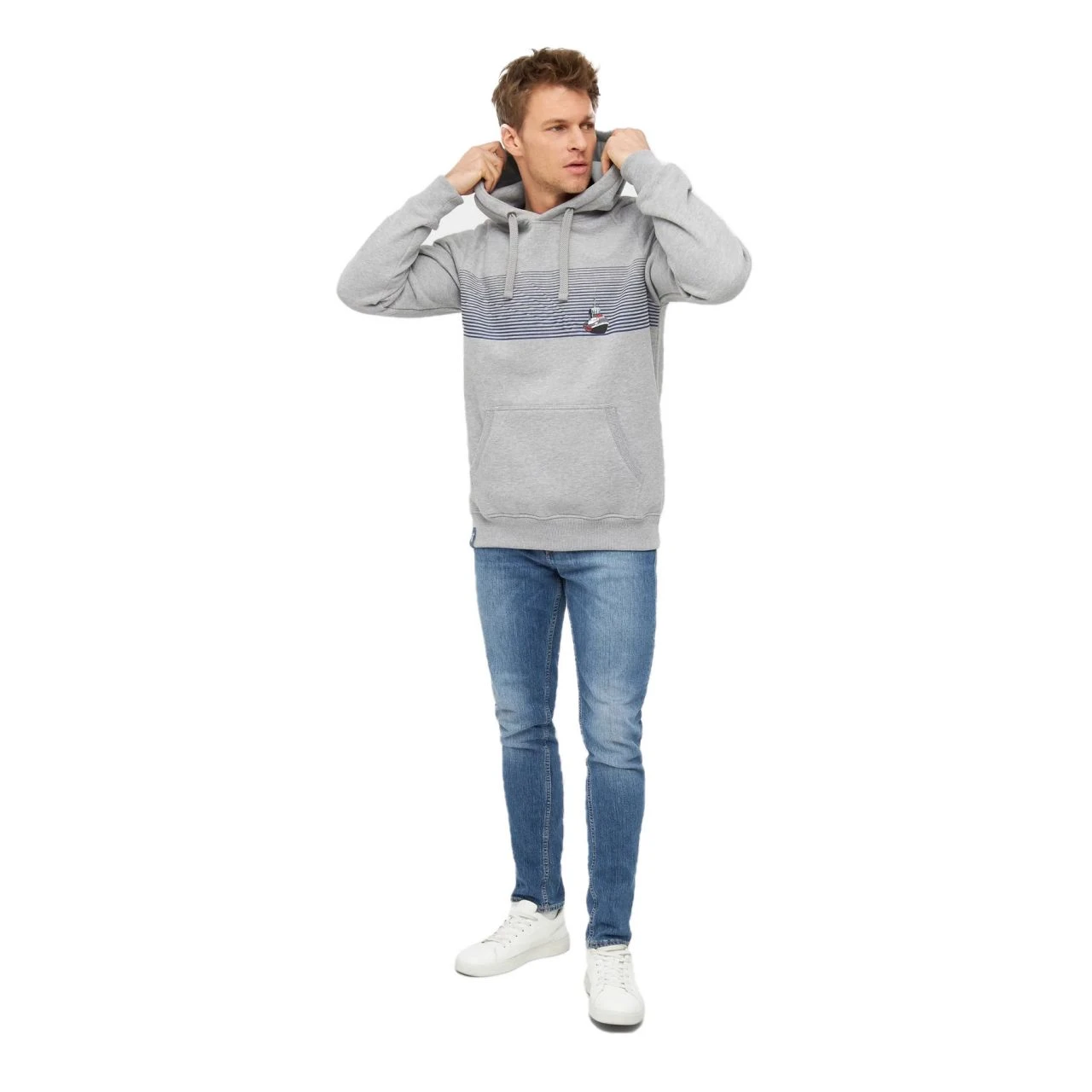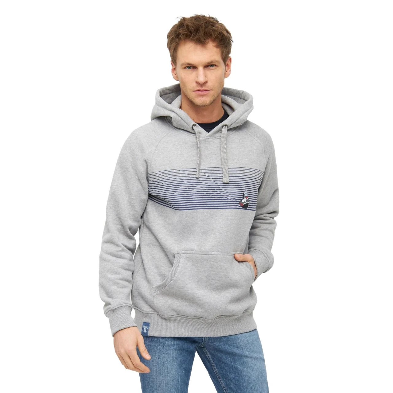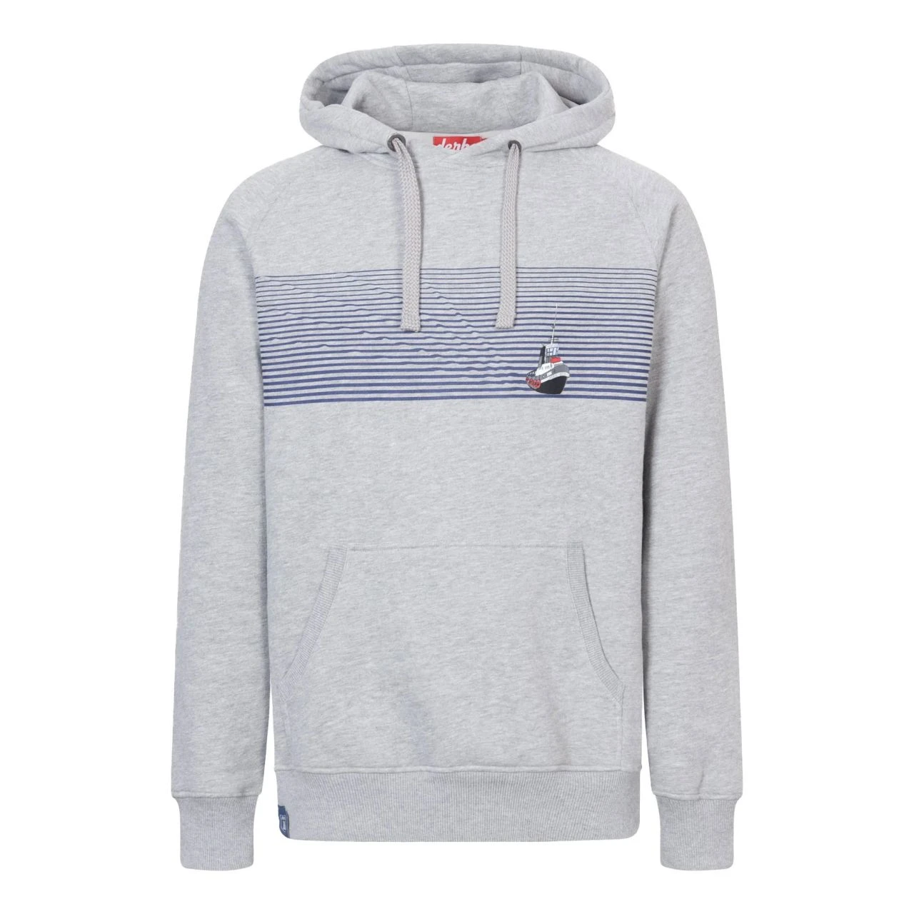 Das Boot zieht seine Wellen durch die Streifen. Was für ein witziger Print! Herren- Hoodie mit angerauter, kuschelweicher Innenseite für dein ganz persönliches „rund um kuschelig- Gefühl“. Seine große Kapuze sieht toll aus und schützt dich und deine Ohren nebenbei vor Wind und leichtem Regen. In die geräumige Kängurutasche passen deine Hände und die deiner Begleitung!