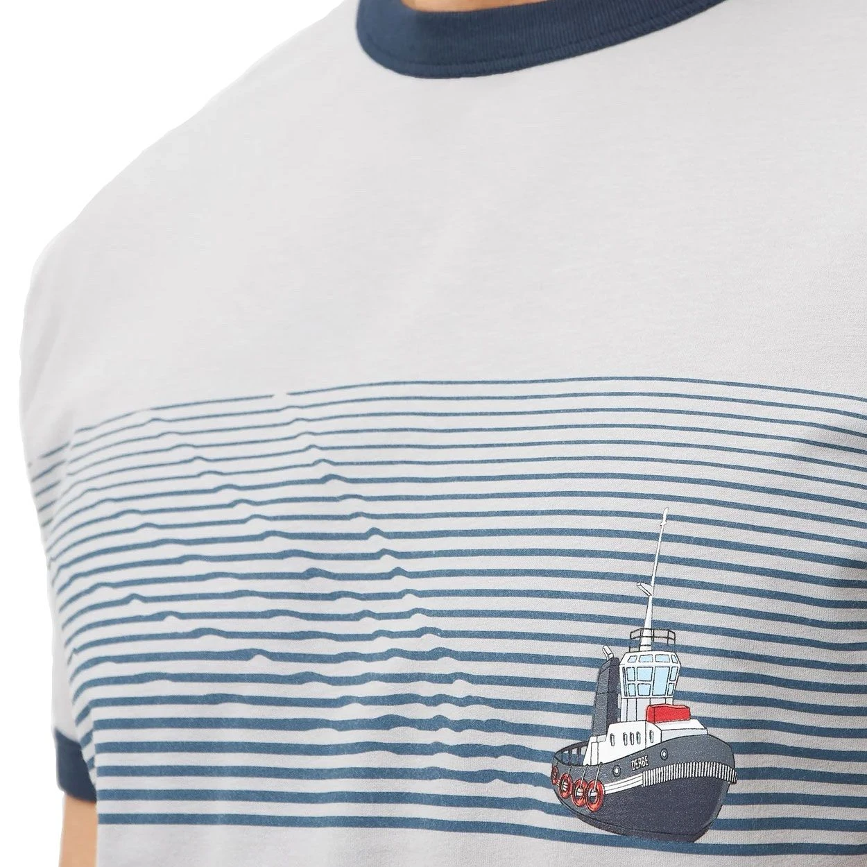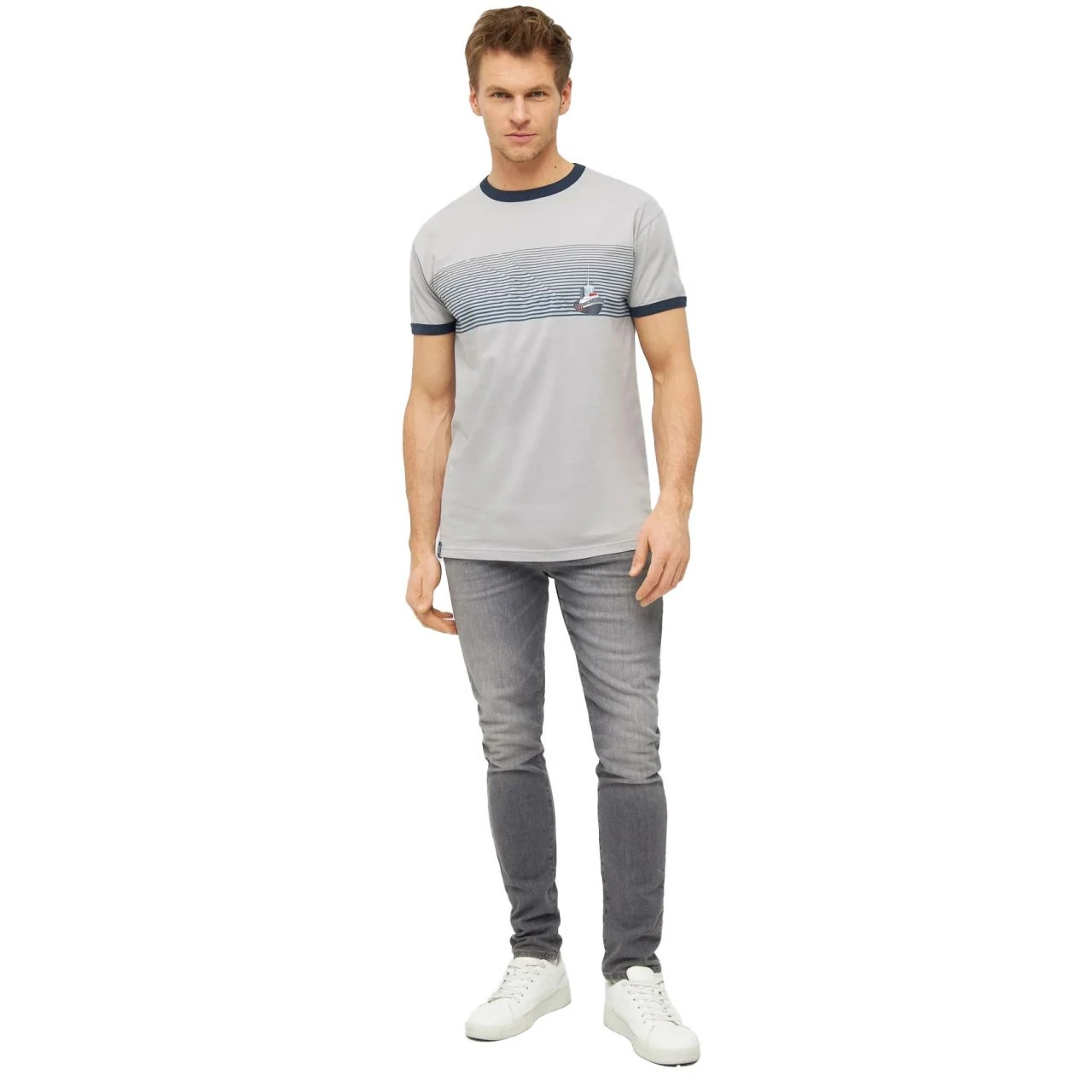 Das Boot zieht seine Wellen durch die Streifen. Was für ein witziger Print!!! Herren Kurzarmshirt mit kontrastfarbigem Rundhals. Bequem geschnitten und aus extra weichem BIO Jersey.