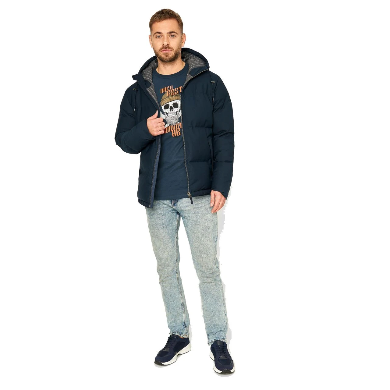 Stovholm, die Herren Winterjacke vom Hamburger Label Derbe hält Ihn besonders warm und trocken, auch wenn das Wetter mal ganz mies ist. Sie ist mit DuPontSonora, einer weichen, gut isolierenden Pflanzenfaser wattiert, die der Daune Konkurrenz macht! Tailliert geschnitten und üppig gesteppt kann er seine Streunerrunden auch im Winter fröhlich fortsetzen.