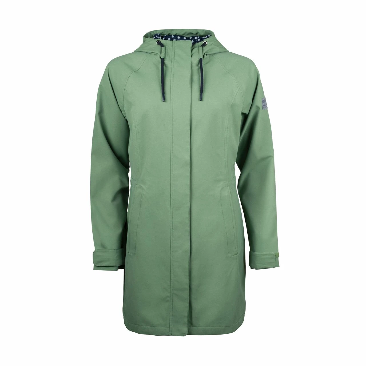 Ein langer, eher eleganter Regenmantel der trotz seiner wasserdichten Eigenschaften nicht zum Dampfbad wird. Hat nämlich Membranen und so Sachen, die die Feuchtigkeit ableiten und all das. Und im Winter kann man da ‘ne Fließjacke einknöpfen. Voila!