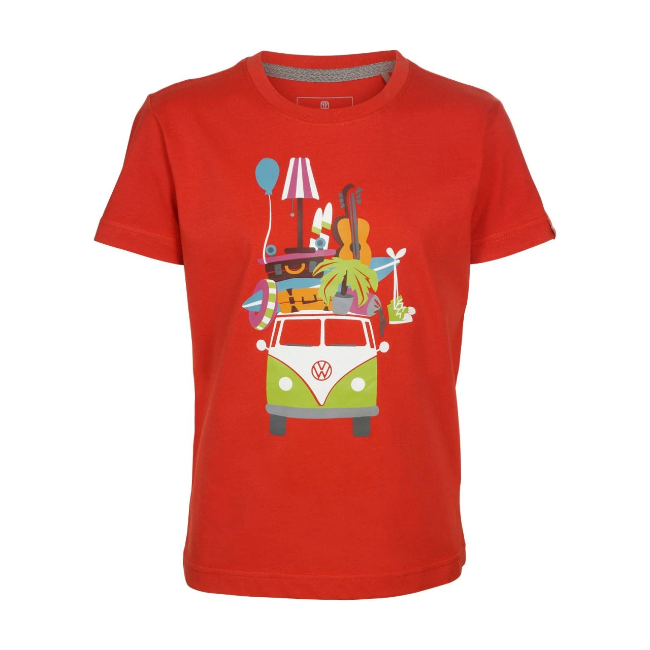 • Volkswagen lizensiertes Kurzarm-Shirt mit vollgepacktem T1 Bulli-Print