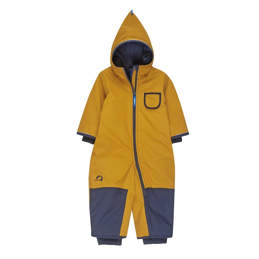 Warmer Winteroverall aus dem neuen, robusten Funktionsgewebe von finkid mit weichem Fleecefutter innen, festen Besätzen an Knien und Po und Zipfelkapuze mit Wetterschild. Der extra lange asymetrische Frontzipper für schnelles ein- und aussteigen, mitwachsende Rippstrick Ärmelsäume, der elastische knöpfbare Antirutsch- Schneefang und umlaufende Reflektorbänder machen PIKKU WINTER schon seit langem zu einem sicheren Begleiter in der kalten Jahreszeit. Ein Gummizug am Rücken dient als Wärmebrücke und sorgt dafür, das der Oberkörper nicht auskühlt. Natürlich sind die Nähte sind versiegelt.