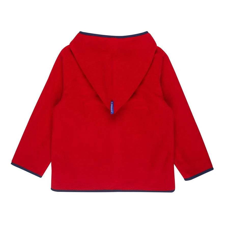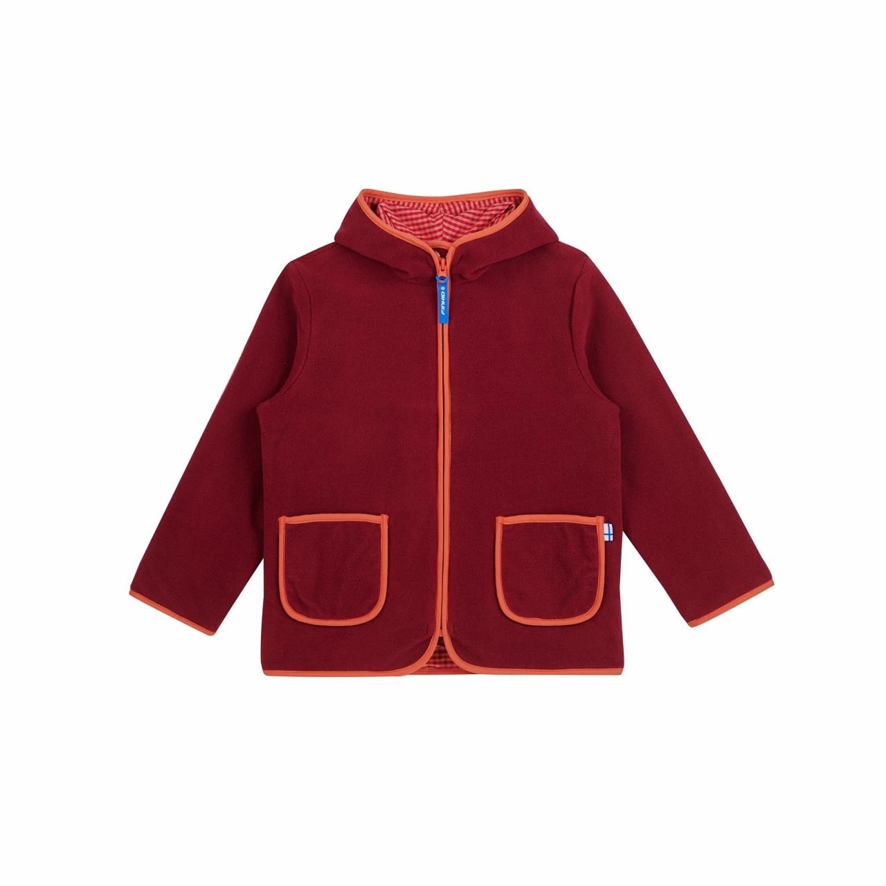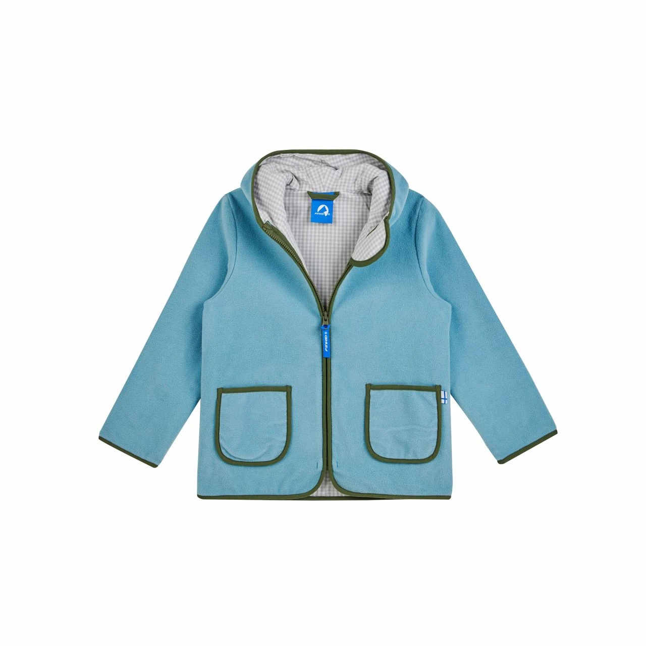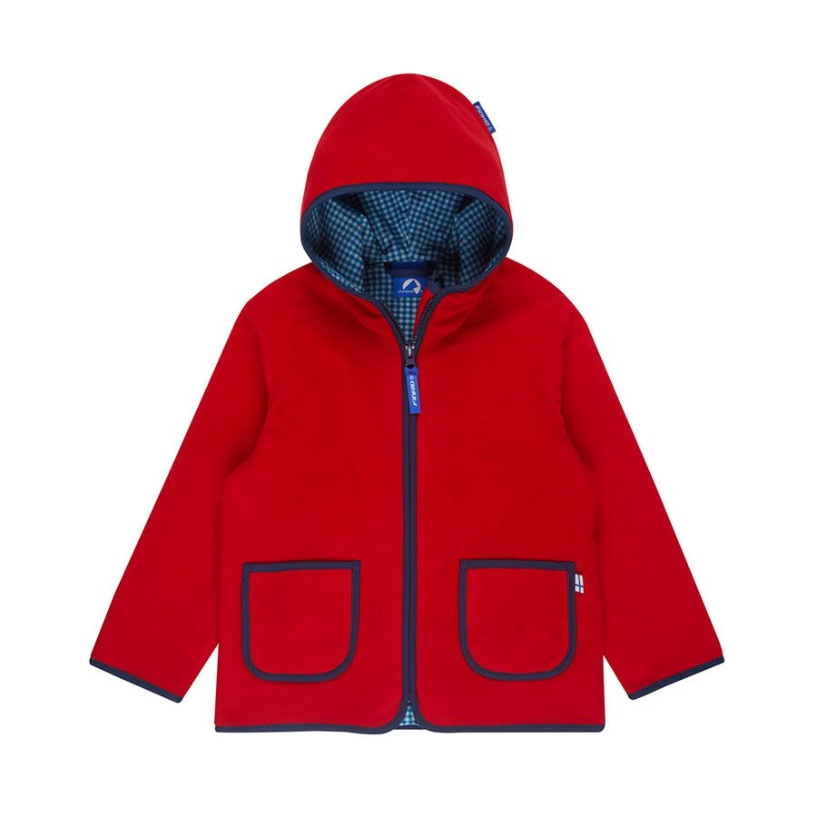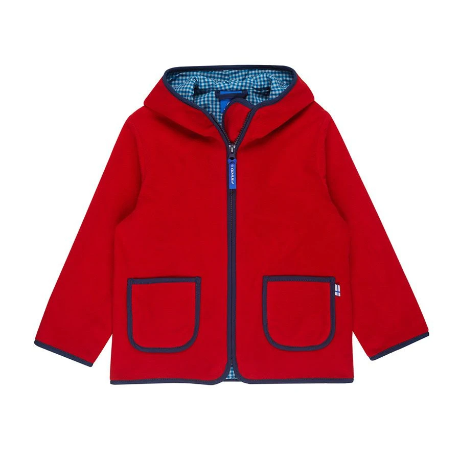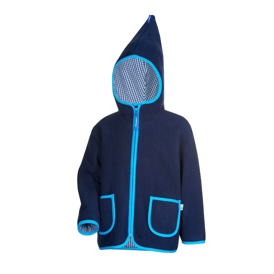 Die gemütliche Zip IN Fleecejacke mit Zipfelkapuze und kariertem Futter aus Baumwollinnenfutter, kontrastfarben eingefassten Saumkanten und vorn aufgesetzten Taschen. Der finkid Allrounder für Zwerge schon mehr als 10 Jahre lang.