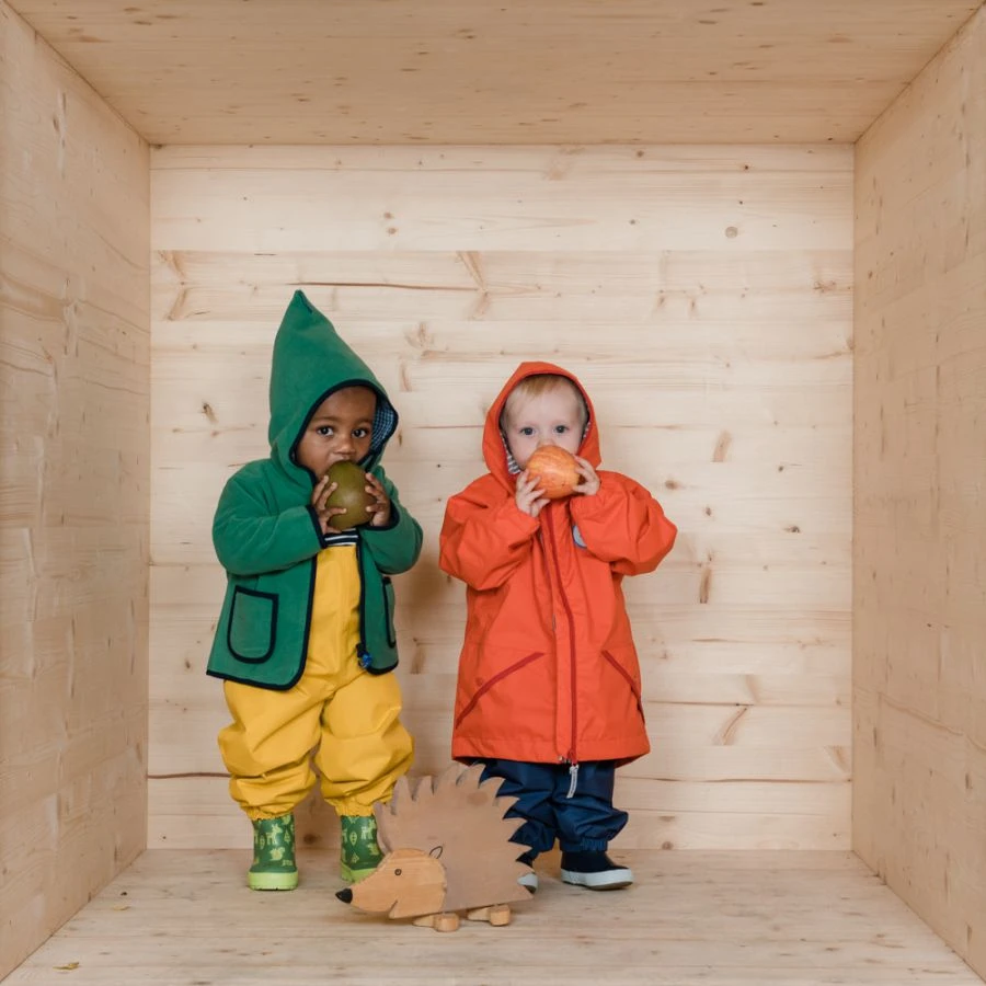 Zum Einzippen muss die Innenjacke auf links gedreht werden. Dadurch hat Ihr Kind noch einmal zwei zusätzliche Geheimtaschen, die Farbe der Innenjacke ist zu sehen und das weiche, wärmende Innenfutter ist näher am Körper.