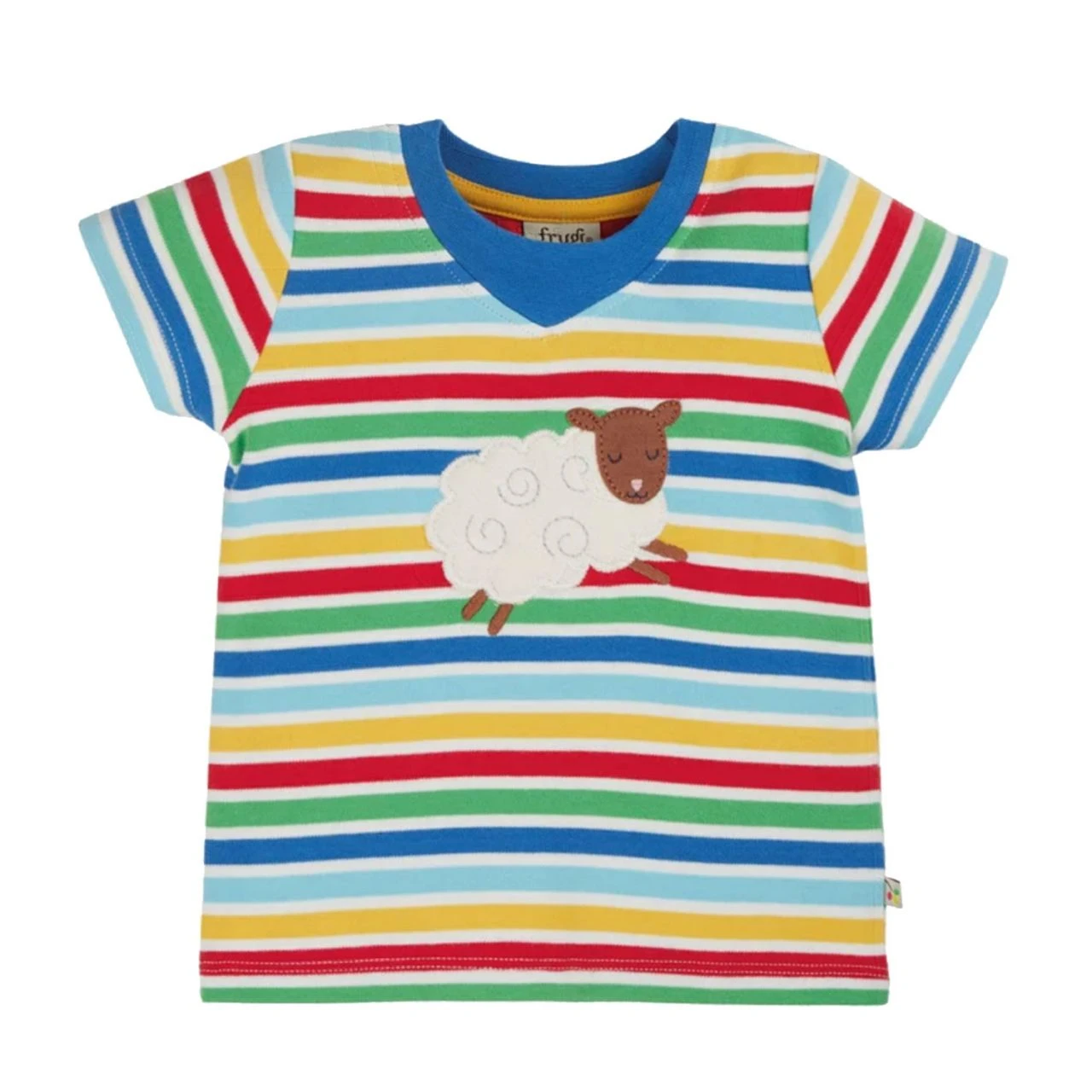 Das kurzärmelige Easy On Tee ist voller toller Eigenschaften! In einem farbenfrohen Kobalt-Regenbogen-Streifen mit einer flauschigen Schaf-Applikation auf der Vorderseite ist die Bio-Baumwolle dieses Kinder-Tops wunderbar weich und atmungsaktiv – perfekt für warme Tage. Und das super dehnbare V-förmige Nackenband macht das Anziehen Ihres zappeligen Kleinen am Morgen zu einem Kinderspiel, ganz ohne fummelige Knöpfe oder Druckknopfverschlüsse. Puh! Kombinieren Sie das Shirt mit den bequemen Kneepatch Crawlers…