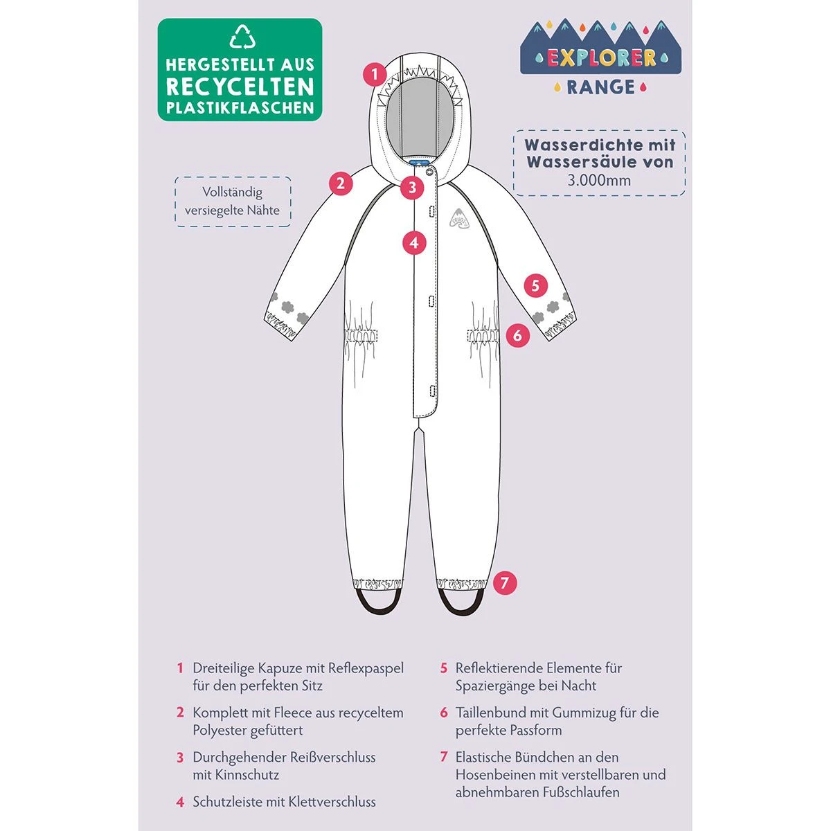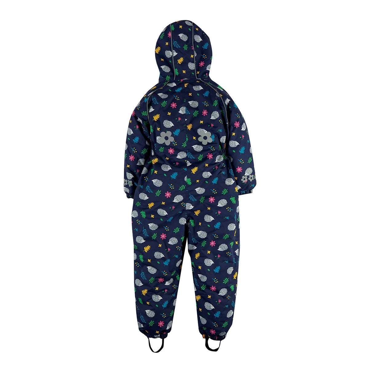 IIm Winter ist ein Overall die die Klügste Wahl für unsere Kinder. In ihm stecken die Kids warm und trocken. Die Einteiler von Frugi kommen aus einem weichen raschelfreien Obermaterial mit einem weichen Griff. Sie sind warm wattiert und mit einem kontrastfarbigen Fleece- Innenfutter ausgestattet. Der Lange Frontzipper erleichtert den Einstieg und die elastischen Gummistege an den Beinenden können über den Fuß oder die Schuhe gezogen werden um das hoch rutschen der Beine zu vermeiden. Die Kapuze ist aufwendig aus drei Teilen gefertigt und mit einem Gummi versehen um sich bestens dem Kopf anzupassen. Ein Taillengummi am Rücken dient als Wärmebrücke zwischen Rumpf und Beinen.