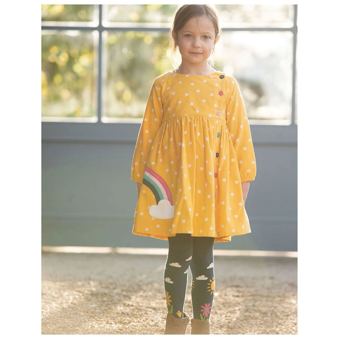 Lustige Strumpfhose von frugi die direkt zu den aktuellen Styles passt. Sie sind weich und haben eine gute Passform. Obenrum Geringelt und untenrum mit Muster machen sie einfach tolle Beine!
