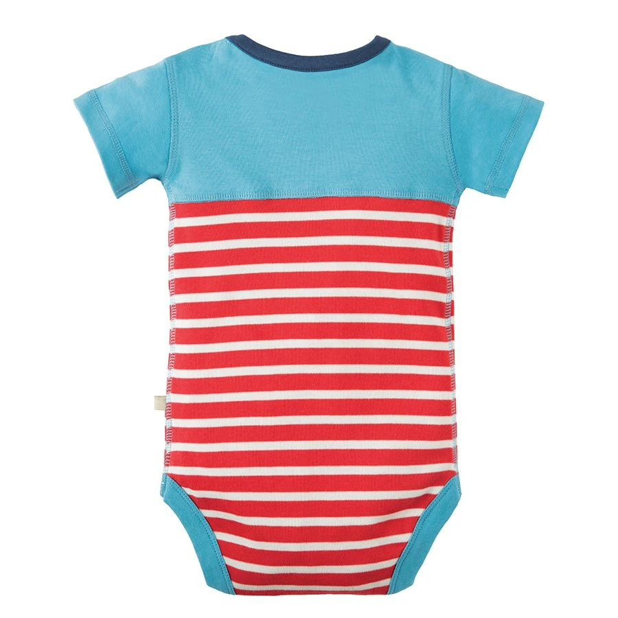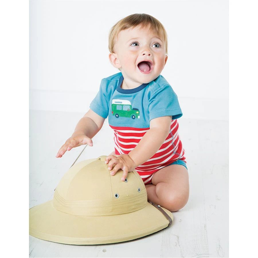 Der Percy Panelled Body kommt aus weicher Biobaumwolle und mit seitlichen Druckknöpfen damit er leicht über den Kopf gezogen werden kann.
