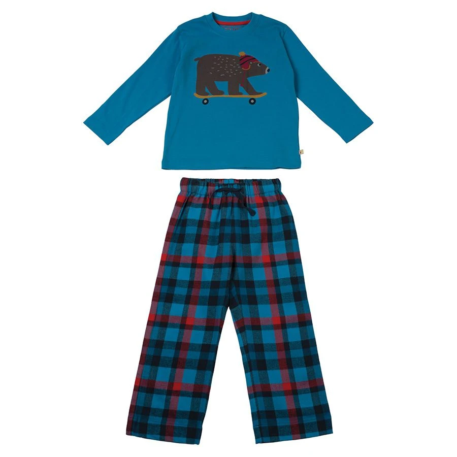 FRUGI – PYJAMA SET MIT FLANELLHOSE – BLAU/BÄR