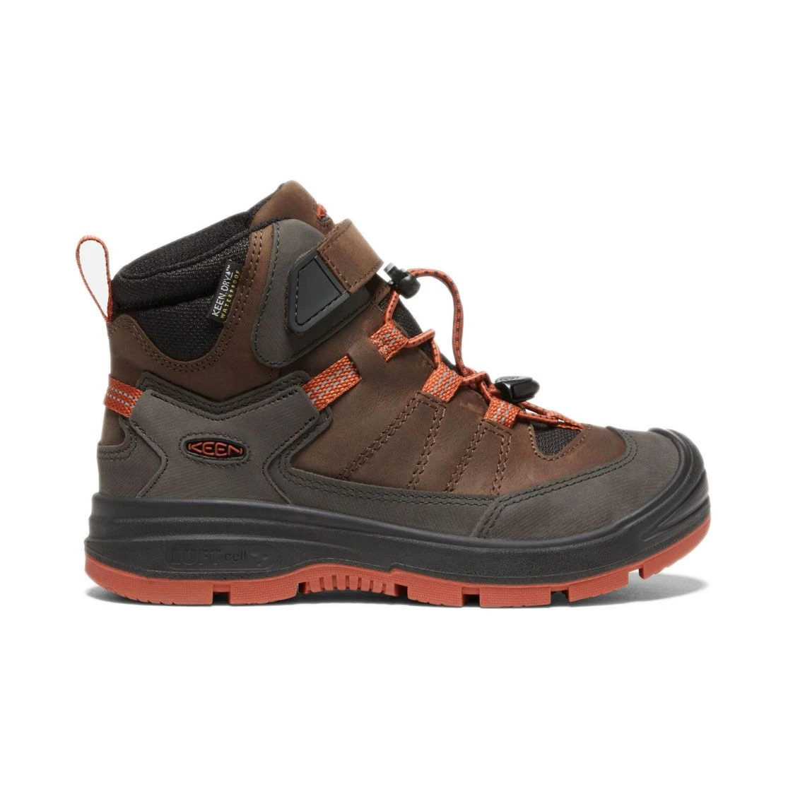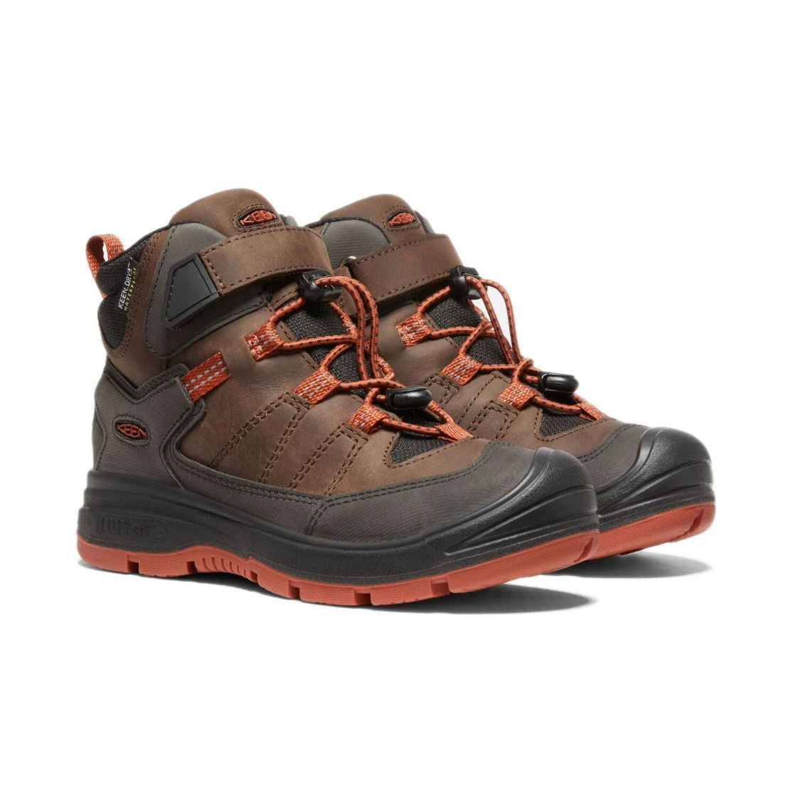 Ein ganz neues Modell von KEEN ist der REDWOOD Kinder Outdoorschuh. Knöchelhoch und aus Nubukleder mit wasserdichter Membran und warm wattiert gefertigt ist er im Winter eine gute Wahl. Robust gebaut mit der KEEN- typischen umlaufenden hohen Sohle und Stoßkappe vorn und mit elastischen Schnürbändern die Kinder einfach bedienen können. Der Schuh ist weit geschnitten und gibt dem Fuß nötigen Spielraum. Seine Rutschfeste Sohle gibt halt bei glätte und die KEEN.WARM Isolierung im Sohleninneren schützt zusätzlich vor kalten Füßen.