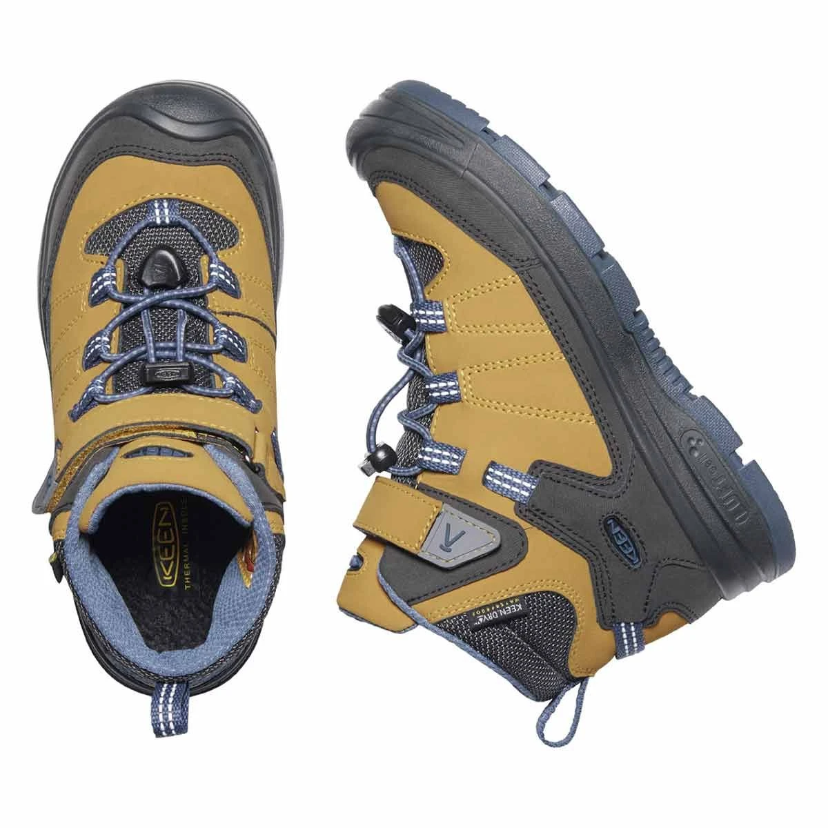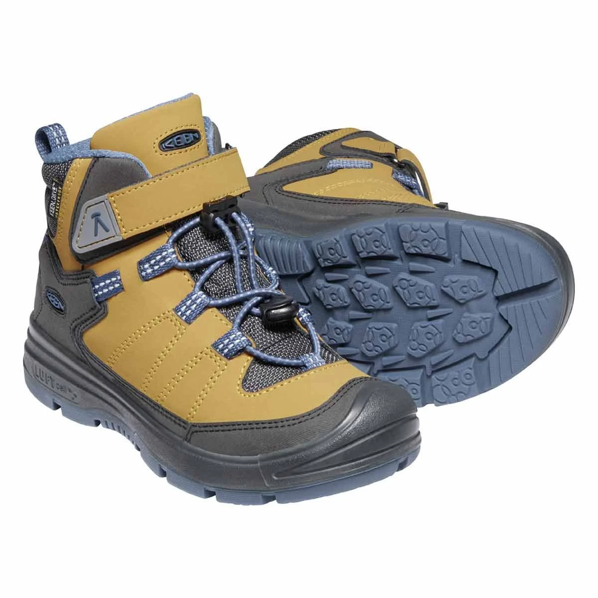 Ein ganz neues Modell von KEEN ist der REDWOOD Kinder Outdoorschuh. Knöchelhoch und aus Nubukleder mit wasserdichter Membran und warm wattiert gefertigt ist er im Winter eine gute Wahl. Robust gebaut mit der KEEN- typischen umlaufenden hohen Sohle und Stoßkappe vorn und mit elastischen Schnürbändern die Kinder einfach bedienen können. Der Schuh ist weit geschnitten und gibt dem Fuß nötigen Spielraum. Seine Rutschfeste Sohle gibt halt bei glätte und die KEEN.WARM Isolierung im Sohleninneren schützt zusätzlich vor kalten Füßen.