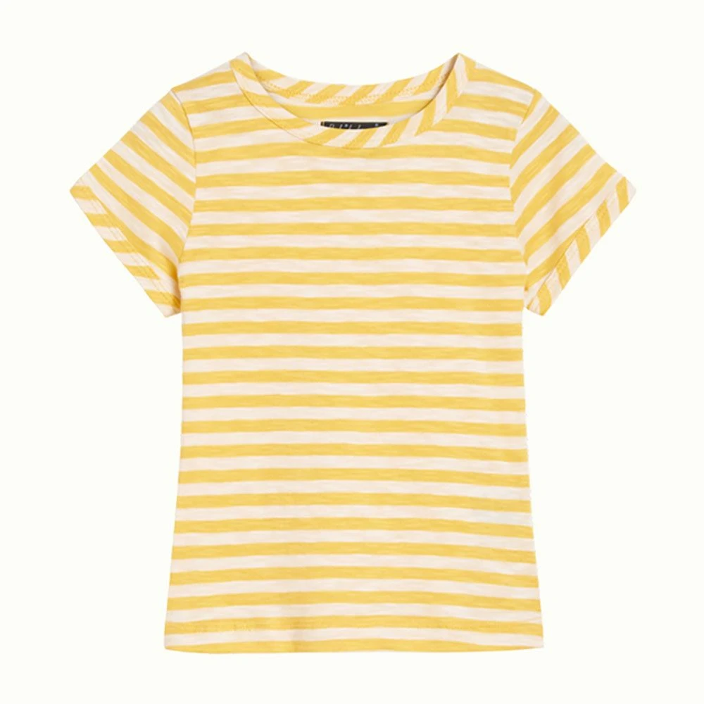 Maritimes Mädchen Streifenshirt aus weicher Bioaumwolle. Die schräg eingefassten Ärmel- und Halssäume geben dem Shirt einen frischen Look.