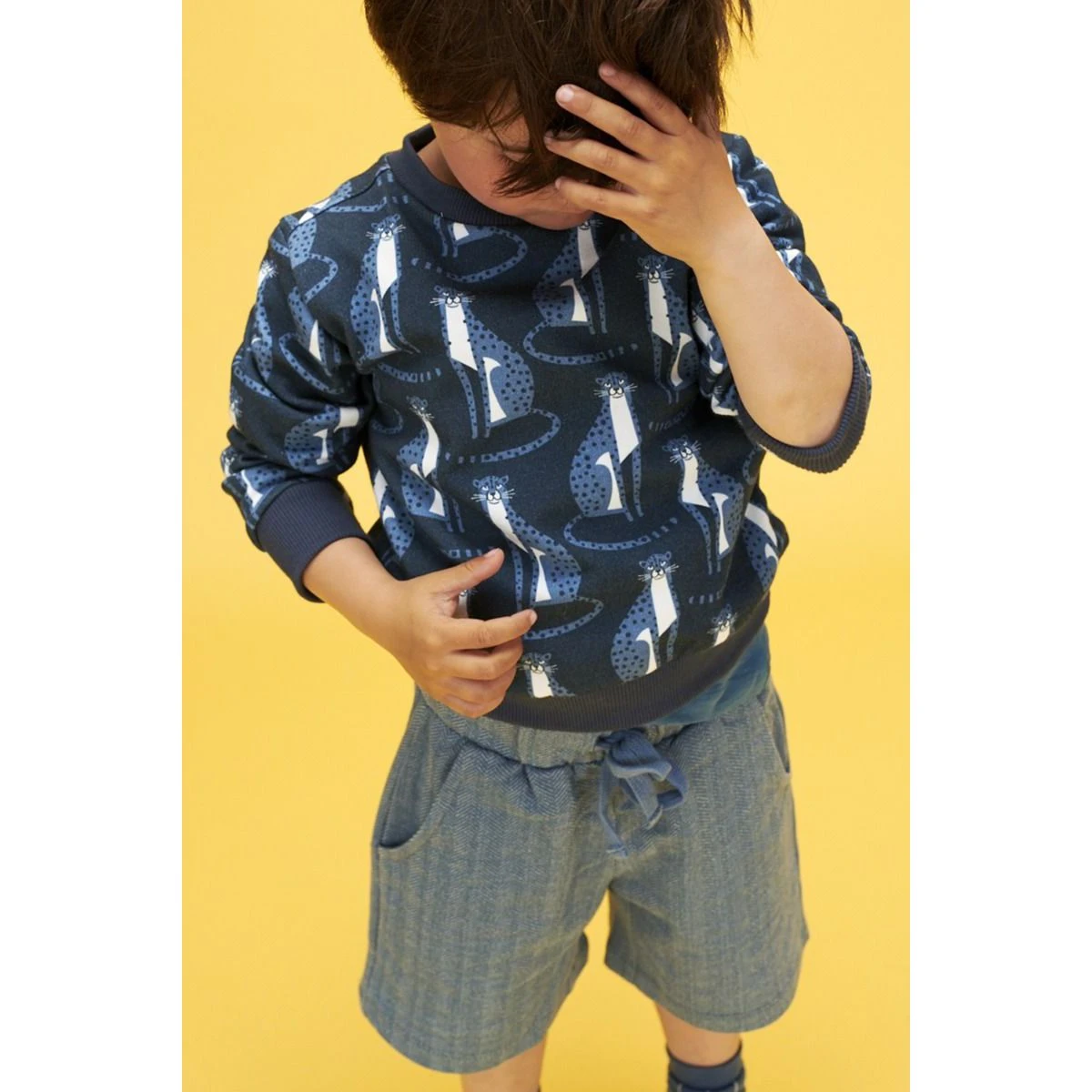Kurze Sommerhose aus weichem Jacquard im frischesten Grün der Saison! Mit gemütlichen seitlichen Einschubtaschen in die die Hände von ganz alleine rutschen. Ihr elastischer Taillenbund kann zusätzlich mit einem Bindeband gebunden werden. Die Shorts enden über dem Knie.
