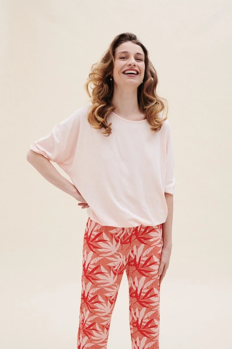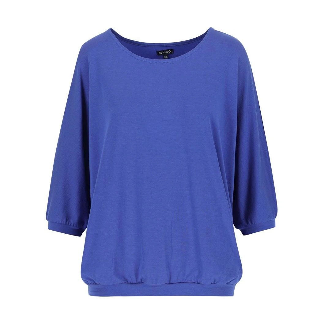 Lässiges Damen Oberteil mit 3/4-langen Ärmeln aus sommerfrischem luftigem TENCEL ™. Die weiten Ärmel laufen bis zur Taille was einen Fledermauseffekt bringt. Kombiniert mit dem elastischen Taillenbund haben Sie so einen Oversize Look der gut kaschiert und lässig wirkt.