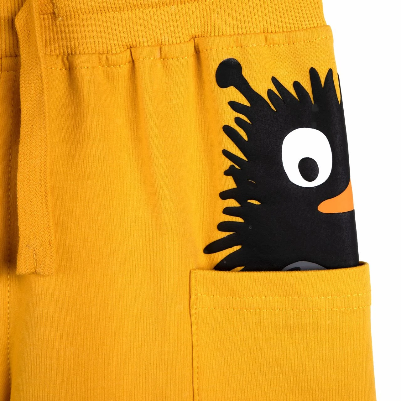 Leuchtend gelbe Jogginghose mit seitlich aufgesetzten Taschen die einen lässigen Loock bringen. Aus der linken Tasch schaut der freche Stinky. Eine Figur aus den zauberhaften Geschichten aus dem Moomintal von Tove Jansson. Die Swetpants kommt mit elastischem Taillengummi das zusätzlich gebunden werden kann. Sie sind ebenso bequem zu tragen wie leicht mit anderen Kleidungsstücken zu kombinieren und.