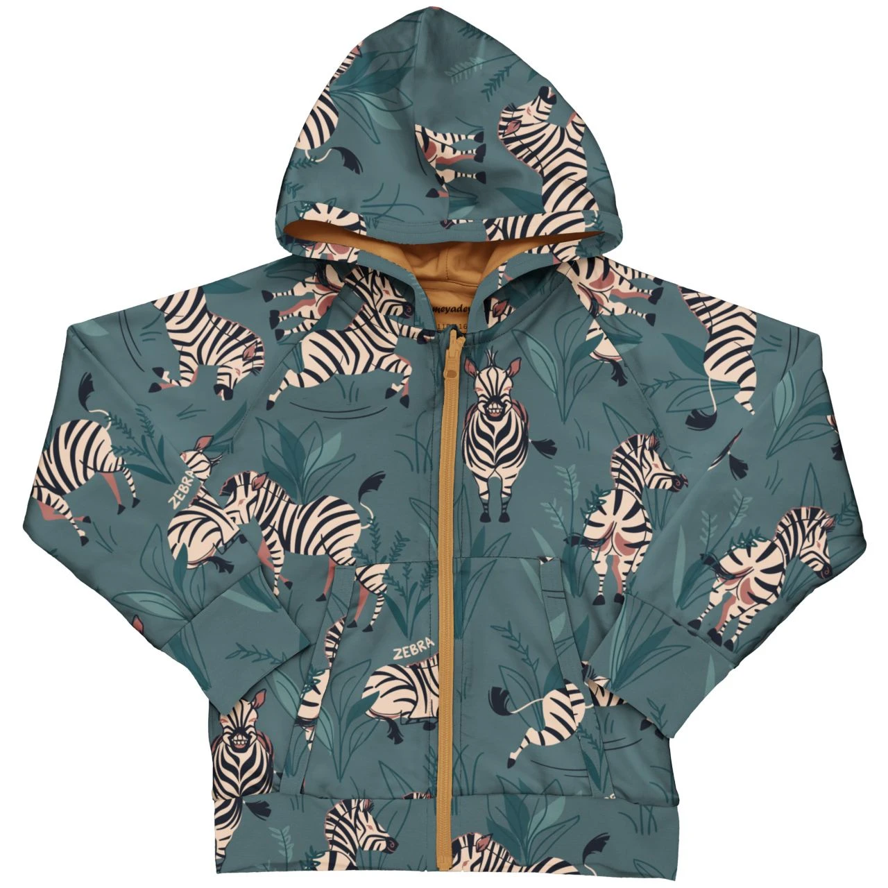 Kapuzenjacke mit großflächigem Zebra Print der kindgerecht aber nicht kitschig ist. Sie kommt aus weichem Bio- Sweat mit elastischen Saumeinfassungen und Bündchen. Gemütliche Kängurutaschen ziehen die Hände magisch an, der breite Frontzipper lässt sich leicht bedienen und verschwindet an der Oberseite, ohne den Hals einzuklemmen, in seiner Garage. Ein Lieblingsteil! MEYADEY ist ein Maxomorra Unterlabel. Das Design der Prints ist insgesamt etwas detailreicher und größer… Typisch für skandinavische Kindermode in leuchtenden Farben und Motiven die der Erlebniswelt von Kindern entsprechen…