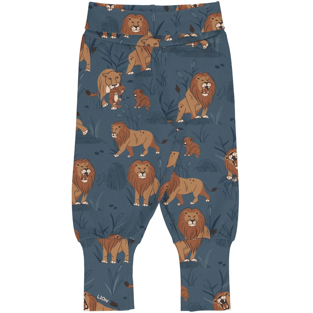 Kuschelhose mit wildem Löwenprint aus weichem, 2-lagigem Jersey für die Allerkleinsten. Mit überlangen krempelbaren Mitwachsbündchen an Taille und Beinen. Für das gemütliche Drunter und Drüber in der Kita und zu Hause. Die Hosen können bestens mit den aktuellen Styles von MEYADEY kombiniert werden. MEYADEY kommt aus Schweden, ist verwandt mit MAXOMORRA und produziert GOTS- zertifizierte Bio Mode.
