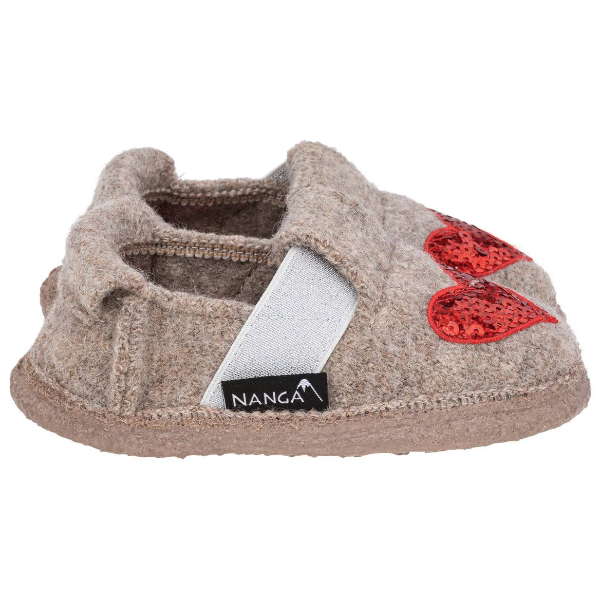 Kinder- Schlupf- Hausschuhe für kühle Tage aus weicher kratzfreier Schurwolle mit feinem Futter und elastischem Gummi über dem Spann. Mit dem akkerliebsten I HEART U Motiv mit roten Pailetten_Herzen erobern sie Mädchjen imnu. Die Hausschuhe umschließen den Fuß und sitzen gut. Ein elastischer Fersenabschluss erleichtert den Kleinen das Rein- und Rausschlüpfen. Die Sohle aus 100% Naturkautschuk ist direkt an den Schuh gegossen und kommt mit einem Relief, das Ihrem Kind Trittsicherheit und einen festen Stadt gibt.