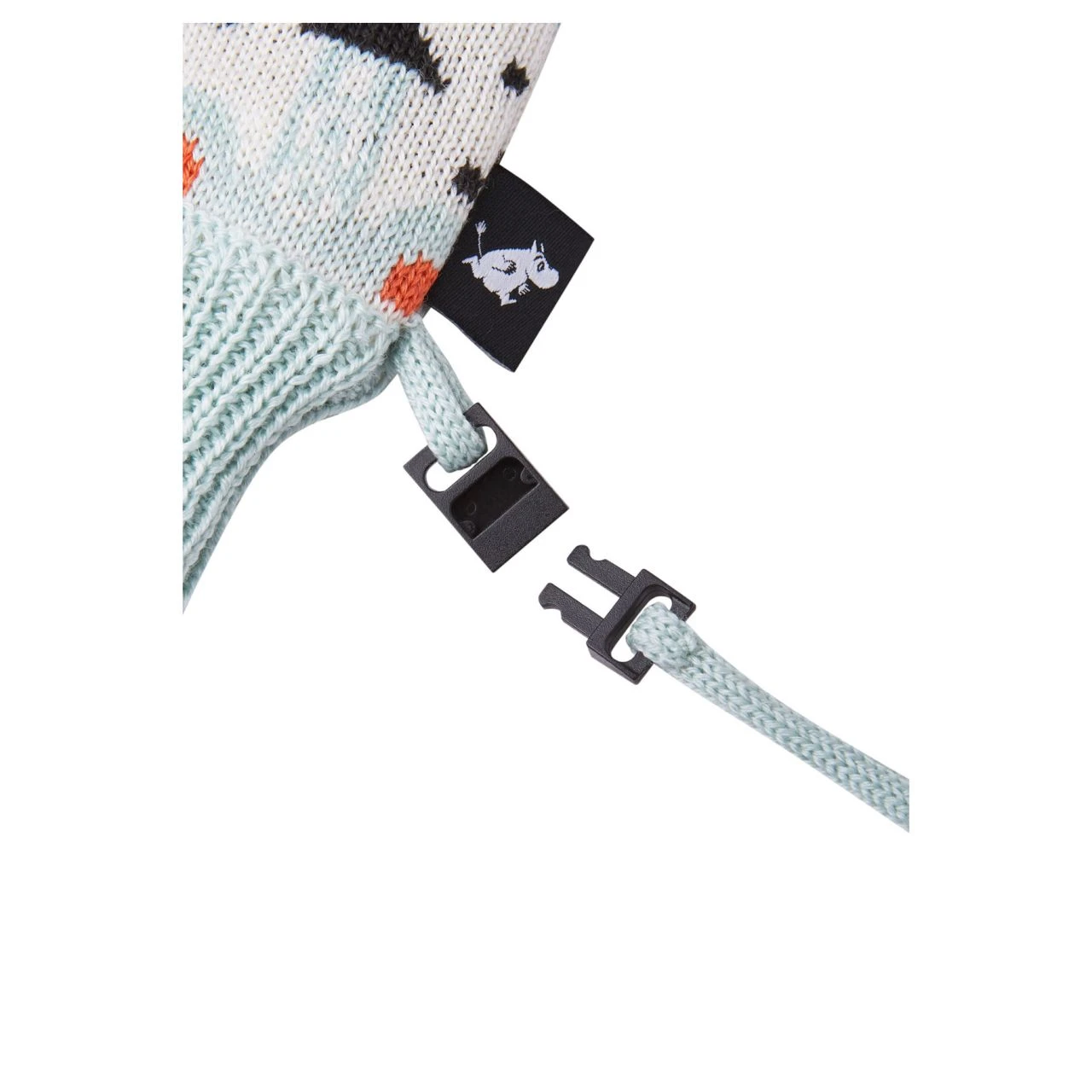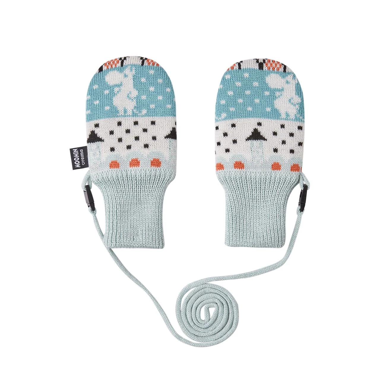 Süße Fäustlinge für kalte Tage. Winterfäustlinge für Babys aus einer weichen und warmen Wollmischung mit Fleecefutter und leichter Wattierung. Dank des praktischen Bandes bleiben die kleinen Fäustlinge zusammen. In Kombination mit der Moomin Yngst Mütze sind sie ein hübsches Geschenk fürs Baby.