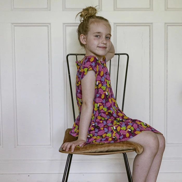 Farbenfrohes, leuchtendes Kurzarmleid mit angesetztem Rockteil. Es ist gerade geschnitten, mit Rundhals und einem kleinen Verschluss zum Knöpfen am Rückenteil ausgestattet. Das Schlupfkleid kann schnell und einfach übergezogen werden und passt jedem Anlass. Sein Material ist leicht strechig, weich und angenehm zu tragen.