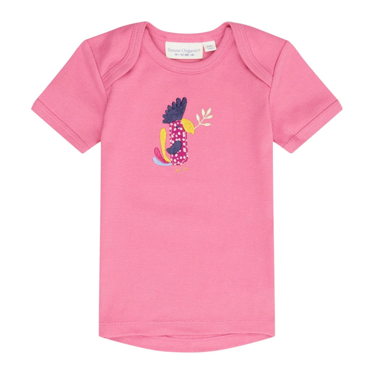 – Einfarbig pink mit Applikation Kakadu; Einfarbig limetten grün mit Applikation Krokodil