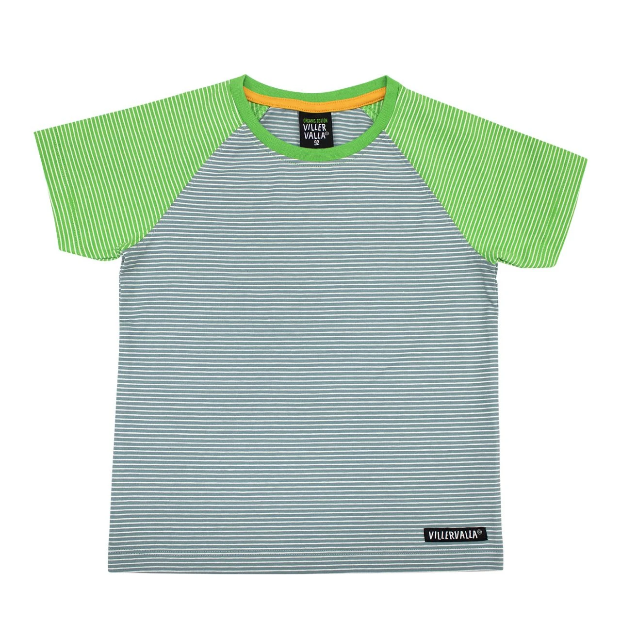 Fein geringeltes kurzärmeliges T- Shirt vom Schwedischen Label VILLERVALLA. Aus BIO Baumwolle geferigt und in leuchtenden Farben freut sich die Sonne darauf es ins richtige Licht zu tauchen.